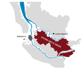 - Enter-Deuxmers đây là khu vực rộng lớn nằm giữa hai sông Dordogne và Garonne, nơi này làm ra nhiều chai rượu vang trắng với phẩm chất tốt mà giá tương đối rẻ. rượu đỏ ở đây chỉ được mang danh hiệu Bordeaux hay Bordeaux Superieur và hầu hết là thứ rượu giản dị, bình thường và dễ uống, làm ra để uống ngay chứ không cần chờ đợi một thời gian lâu như rượu đỏ trên Medoc.
