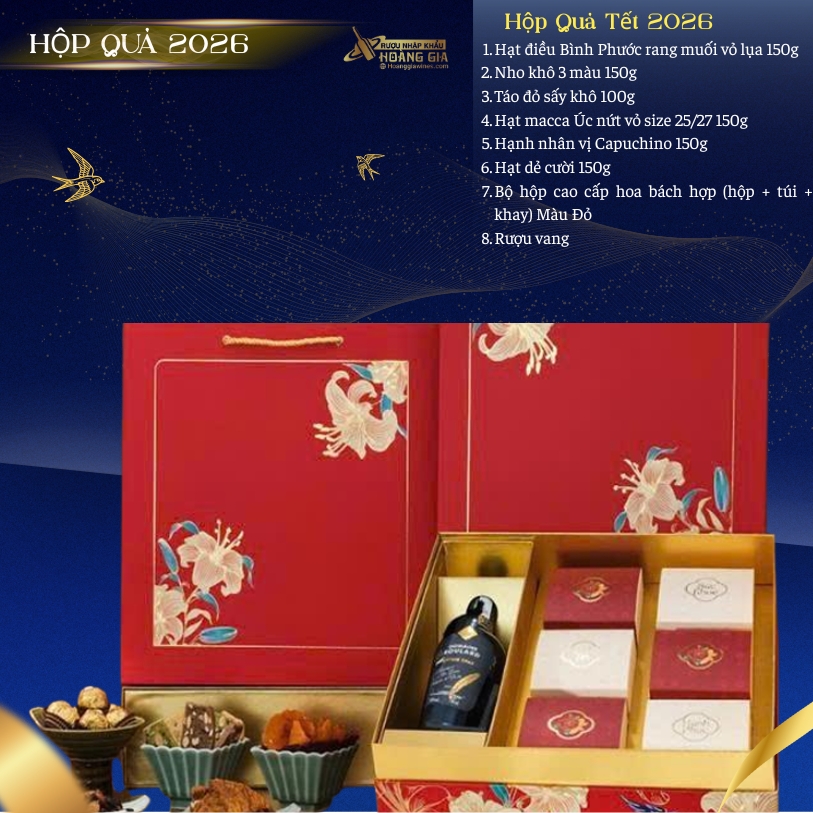 HỘP QUÀ TẾT BÁCH HỢP TÂM GIAO - 2026 - Rượu Nhập Khẩu Hoàng Gia Chuyên Cung Cấp Sỉ Và Lẻ Các Dòng Vang Nhập Khẩu Từ Các quốc gia có nên văn hoá rượu vang lâu đời như: Ý, Pháp, Chile, Tây Ban Nha, Mỹ, Đức, Bồ Đào Nha, Úc, Argentina,....